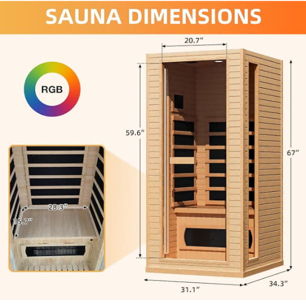 【कल्याणकारी फायदे】 आमचे वैयक्तिक सौना डिटॉक्सिफिकेशनला प्रोत्साहन देते, रक्त परिसंचरण सुधारते आणि संयुक्त आणि स्नायूंच्या दुखण्यापासून आराम देते. कॅलरी ज्वलंत करण्याव्यतिरिक्त, हे त्वचेचा टोन वाढवते आणि आपले कल्याण सुनिश्चित करून एक उबदार, शांत आणि शांत अनुभव देते.