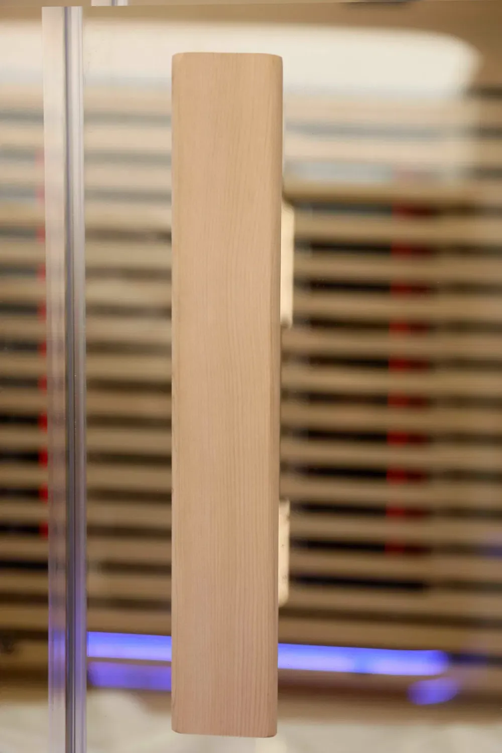 • आयात केलेल्या कॅनेडियन हेमलॉक सॉलिड लाकडापासून बनवलेले, दाट आणि मजबूत पोत, स्पष्ट नैसर्गिक धान्य आणि एक मंद नैसर्गिक लाकडाचा सुगंध जो आरामदायक आणि शांत सौना वातावरण तयार करतो;