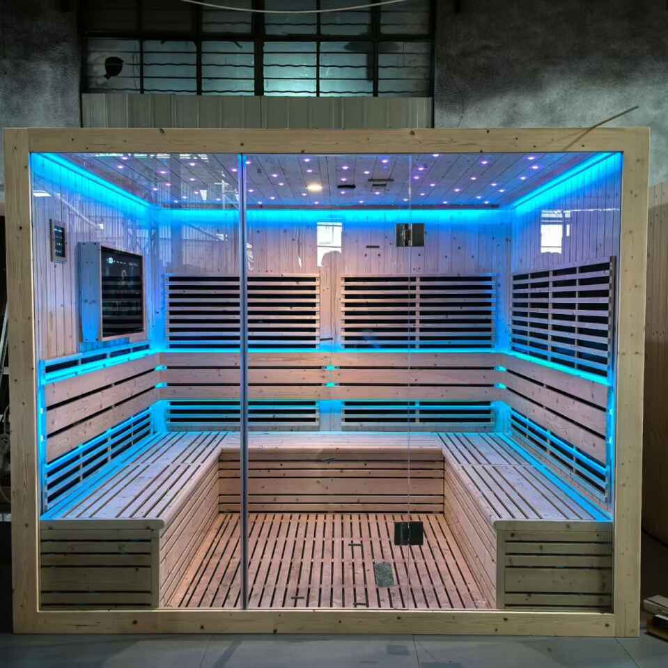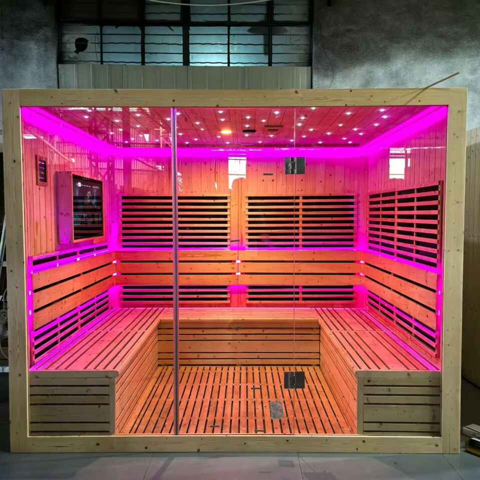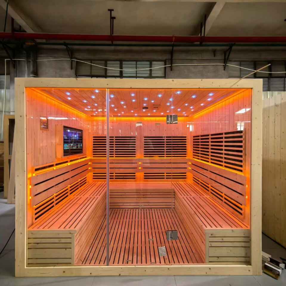 5-10 वापरकर्त्यांसाठी इंजिनिअर केलेली, ही सौना रूम कौटुंबिक मेळावे, मित्रमैत्रिणींसाठी किंवा स्पा आणि वेलनेस सेंटर्स सारख्या छोट्या व्यावसायिक जागांसाठी आदर्श आहे. उच्च-गुणवत्तेच्या सॉना लाकडापासून बनवलेले, ते आपल्या जागेत नैसर्गिक, उबदार सौंदर्य आणताना टिकाऊपणा सुनिश्चित करते.