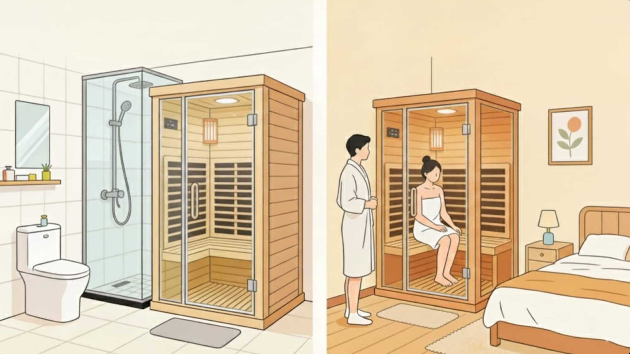 सॉनाचे दोन प्रकार परस्पर अनन्य नाहीत आणि ऋतूनुसार एकत्रितपणे वापरले जाऊ शकतात-उन्हाळ्यात दूर-अवरक्त सॉना वापरा (कोरडे आणि न भरलेले, दमट उष्णतेची स्थिती टाळून); हिवाळ्यात स्टीम सॉना वापरा (उबदार आणि मॉइश्चरायझिंग). परिस्थिती असलेली कुटुंबे "आंशिक नूतनीकरण + लवचिक पूरक" योजना स्वीकारू शकतात: बाथरूममध्ये स्टीम सॉना मॉड्यूल स्थापित करा आणि आरोग्याच्या गरजा पूर्ण करण्यासाठी बेडरूम/बाल्कनीमध्ये एक लहान दूर-अवरक्त सॉना ठेवा.