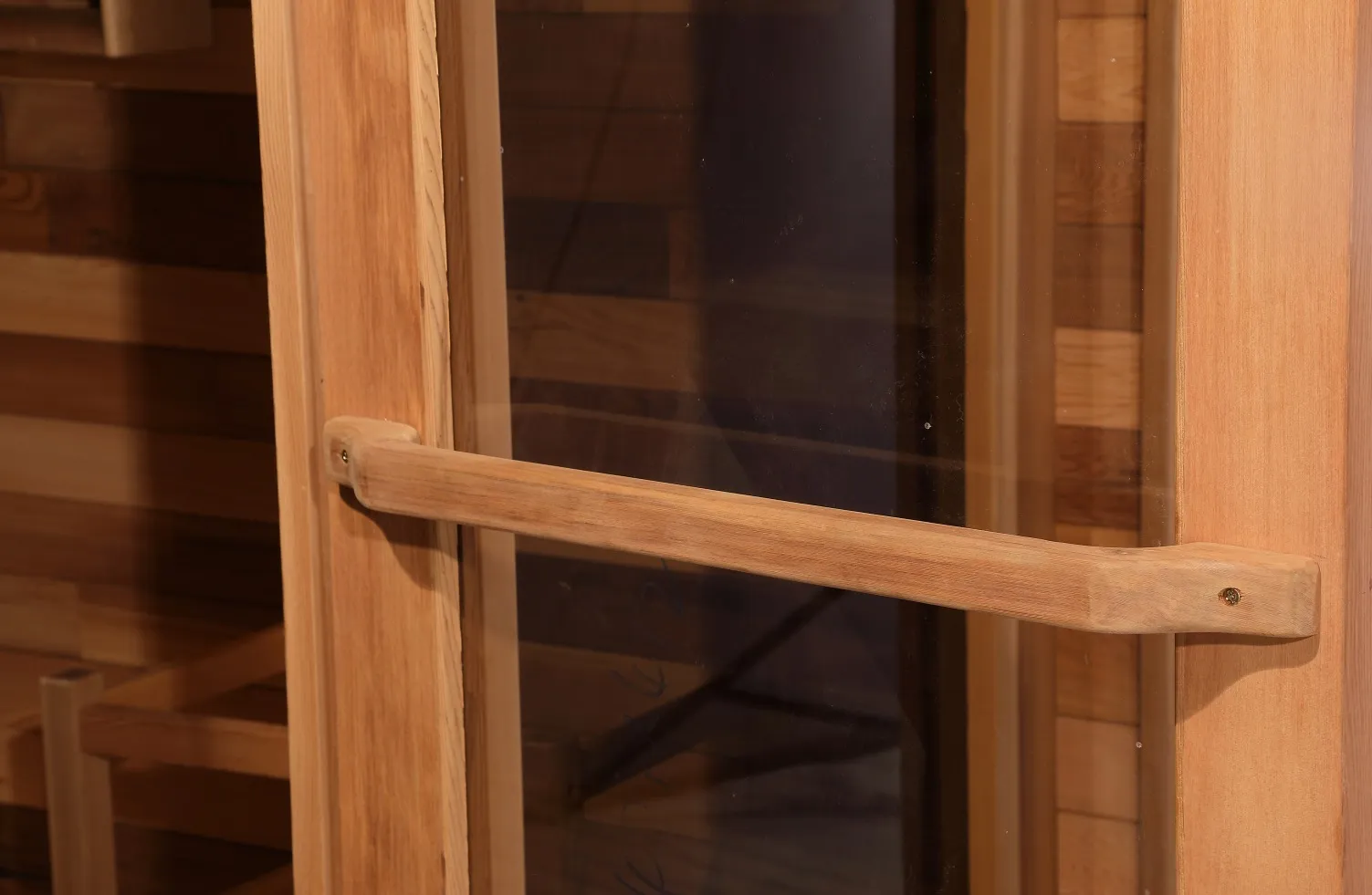 उच्च-दर्जाच्या नैसर्गिक हेमलॉक लाकडापासून तयार केलेले, नाजूक आणि उबदार धान्यांसह सूक्ष्म नैसर्गिक लाकडाचा सुगंध आहे जो स्पर्शास आरामदायक वाटतो. सामग्रीमध्ये व्यावसायिक गंजरोधक उपचार केले जातात, एकसमान घनता आणि विकृती आणि क्रॅकिंगचा प्रतिकार केला जातो. अंगणात थेट सूर्यप्रकाश असो किंवा अंगणातील दमट परिस्थिती असो, ते दीर्घकालीन वापरासाठी स्थिर पोत राखते, नैसर्गिक सौंदर्यशास्त्रांना व्यावहारिक टिकाऊपणासह एकत्रित करून तुमच्या बाहेरील सौना सत्रांसाठी शांत वन-प्रेरित वातावरण तयार करते.
