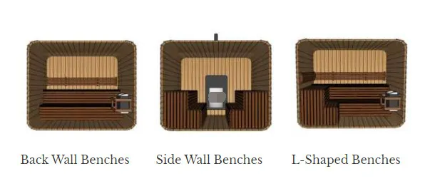 विशेषत: गट वापरासाठी खुल्या इंटीरियरसह डिझाइन केलेले, तीन सीट लेआउट पर्यायांना समर्थन देते: मागील-भिंत माउंट केलेले, साइड-वॉल माउंट केलेले आणि एल-आकाराचे. हे विविध गट आकार आणि वापराच्या सवयींशी जुळवून घेते (सहजपणे कौटुंबिक मेळावे किंवा मित्र एकत्र येणे). आसन एक स्तरित पोकळ रचना स्वीकारतात, ज्यामुळे बसणे आणि झोपणे सोयीस्कर होते आणि अंतर्गत हवा परिसंचरण सुलभ होते, उच्च-तापमानाच्या वातावरणात सॉनाचा अनुभव अधिक श्वास घेण्यायोग्य आणि कमी भरलेला असतो.