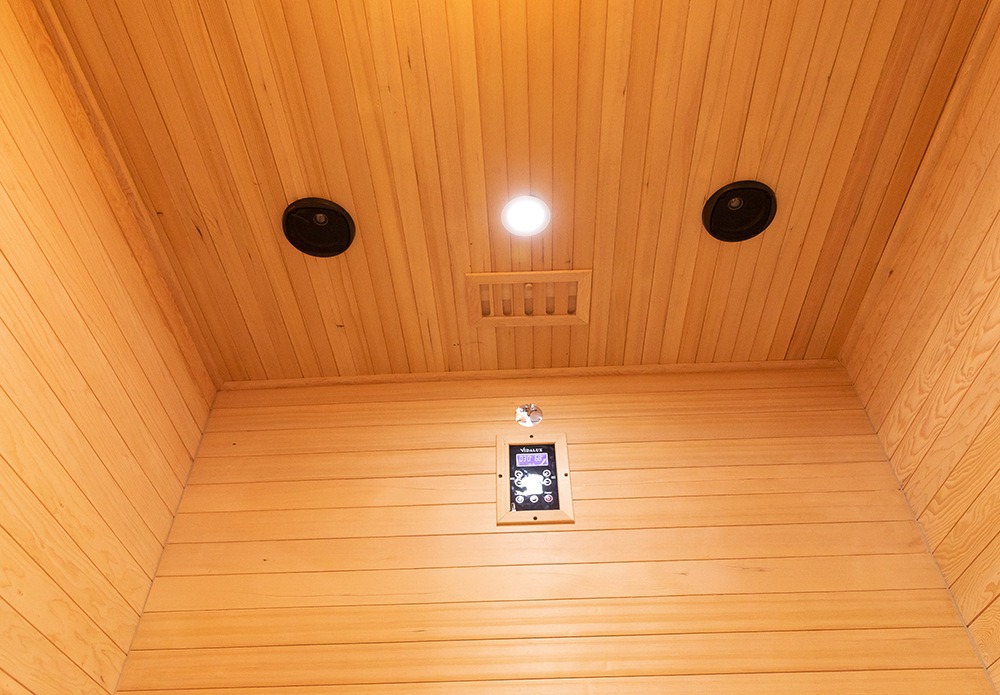 वॉल लॅम्प आणि काचेच्या दरवाजासह आउटडोअर आयर्नवुड सौना रूम. सीट आणि बॅकरेस्ट मानवी शरीराच्या वळणावर उत्तम प्रकारे बसतात, त्यामुळे दीर्घकाळ बसूनही आरामदायी होतो आणि पाठीचा दाब प्रभावीपणे पसरतो. तळाशी असलेले मल्टी-पॉइंट वेंटिलेशन डिझाइन कार्यक्षम हवेच्या अभिसरणास प्रोत्साहन देते, सॉना अनुभवाच्या आरामात आणखी सुधारणा करते. त्याच वेळी, हे कप होल्डर, टॉवेल रॅक आणि वृत्तपत्र रॅक यांसारख्या स्टोरेज सिस्टमसह विचारपूर्वक सुसज्ज आहे, जे तुम्हाला संपूर्ण मानवीकृत तपशीलांसह, आराम करताना आवश्यक वस्तूंमध्ये सहज प्रवेश करण्यास अनुमती देते.