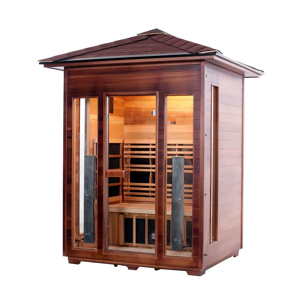हे मैदानी सौना कॅनेडियन वेस्टर्न रेड सिडर किंवा कॅनेडियन हेमलॉकपासून बनवलेले आहे. लाकूड गंज आणि आर्द्रता प्रतिरोधक तसेच संरचनात्मक स्थिरता वाढवते. दूर-अवरक्त कार्बन फायबर हीटिंग तंत्रज्ञानासह सुसज्ज, ते त्वरीत गरम होते आणि समान रीतीने उष्णता वितरीत करते. अंगण, बाल्कनी, व्हिला गार्डन्स, पूल साइड एरिया आणि रिसॉर्ट्स यांसारख्या बाह्य वातावरणासाठी योग्य.