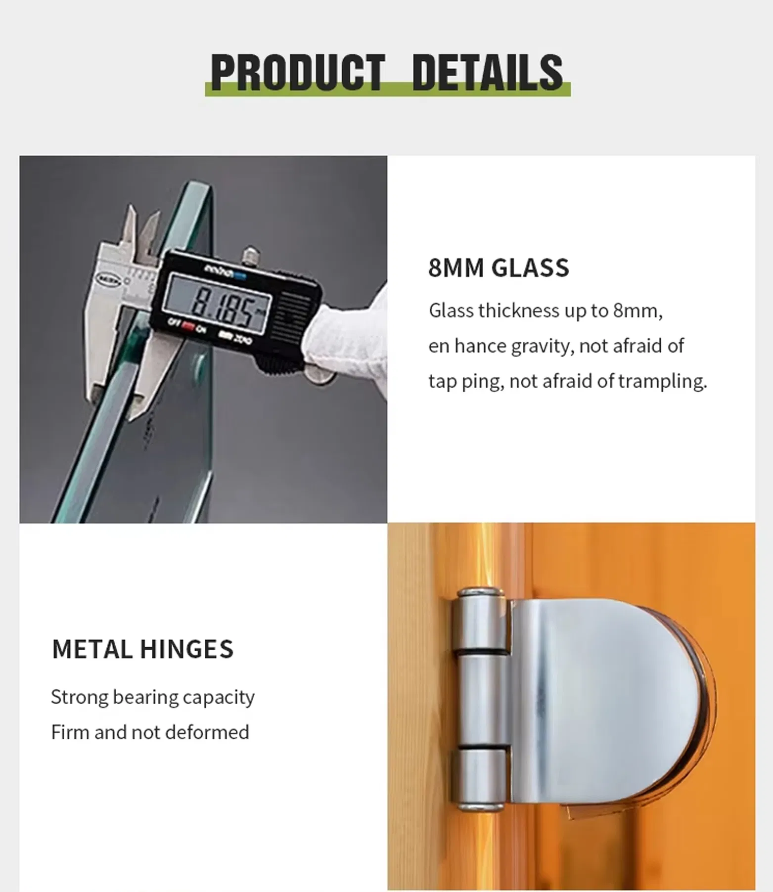 ✅हॉटेल-गुणवत्तेची टिकाऊपणा- दैनंदिन वापरासाठी 8 मिमी टेम्पर्ड ग्लास, हेवी-ड्युटी बिजागर आणि चुंबकीय दरवाजा लॉकसह प्रबलित.